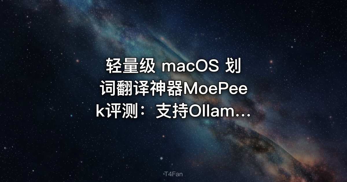 MoePeek是一款轻量级的macOS划词翻译工具,采用原生Swift 6构建,支持多种翻译方式,包括Ollama和DeepSeek,适合注重资源占用和个性化配置的用户。