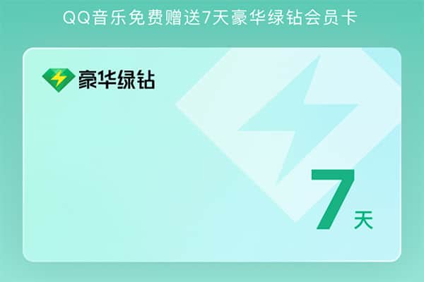 限时福利!现在即可免费领取QQ音乐豪华绿钻7天体验。