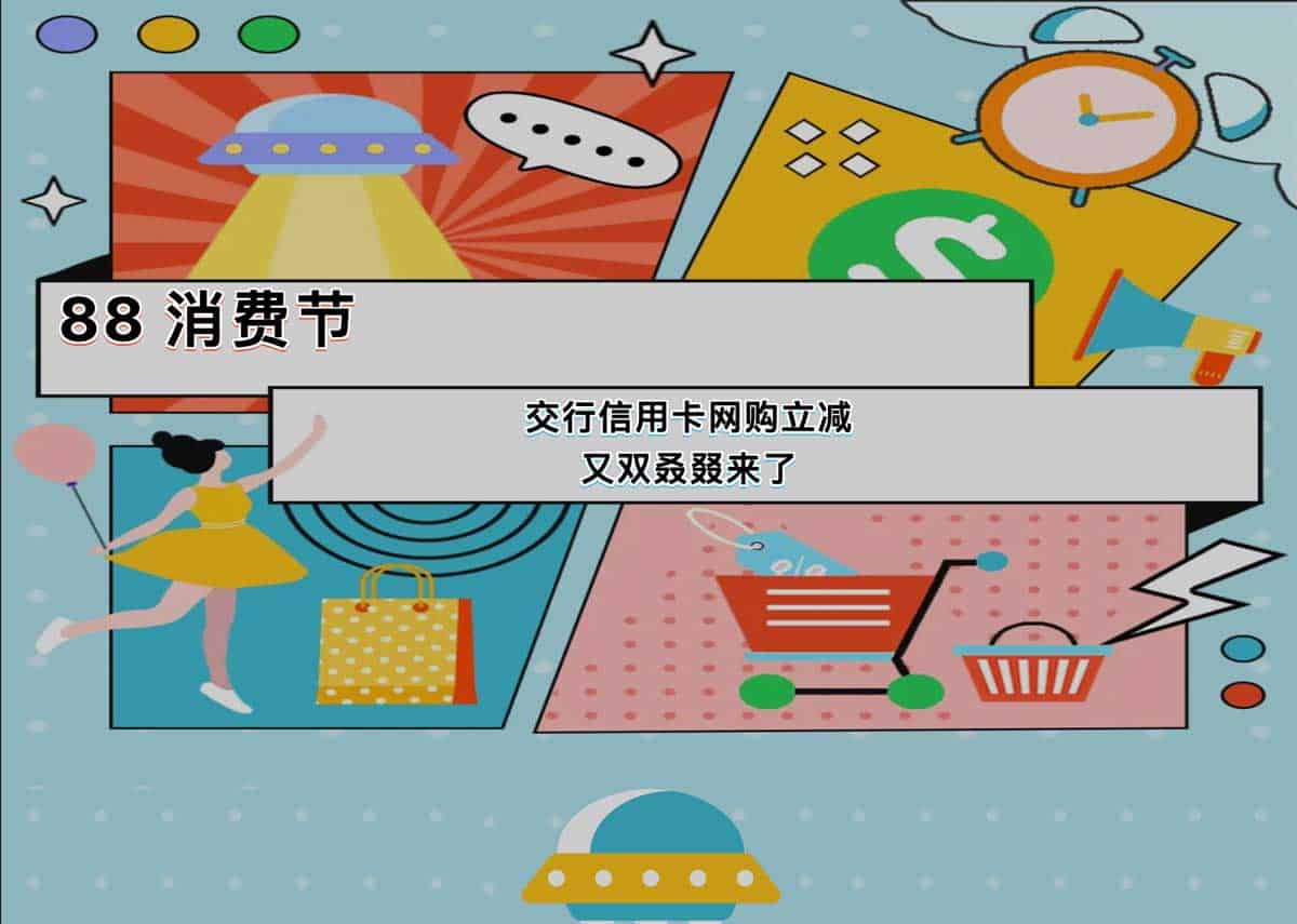 交通银行推出88消费节活动,绑定支付宝的广东地区信用卡用户,单笔消费满20元即可享受随机立减优惠,每人每月最多四次。活动时间从8月1日至8月31日,具体规则和参与方式请参考活动详情。